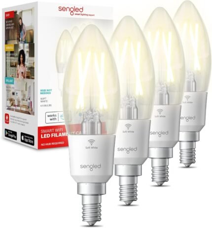 Sengled Smart Light Bulbs, Smart Candelabra LED Bulb, Dimmable Chandelier Light Bulbs, 5W (40W Equivalent) 450LM, Smart Bulbs That Work with Alexa Google, Only 2.4GHz WiFi, No Hub Required, 4 Pack