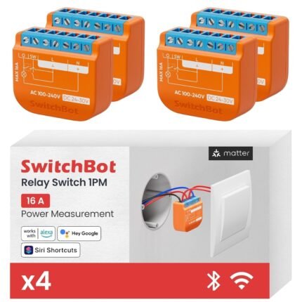 SwitchBot Matte Relay Switch 1PM, WiFi Switch Compatible with Alexa/Apple Home/Google Home, Power-Measuring Relay Switch Module with Integrated Bluetooth Repeater, Bluetooth & Wi-Fi 2.4 GHz, 16 A