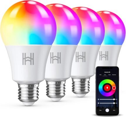 Smart Light Bulbs 4 Pack, A19 Color Changing LED (800 Lumens), WiFi & Bluetooth, Music Sync, Compatible with Alexa & Google Assistant, No Hub Needed, 16 Million Colors