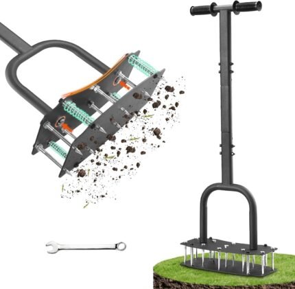 Lawn Aerator Tool with Bolt-On Base & Kick-to-Unclog – Manual Grass Aerator for Compacted Clay Soil, Never Weld Never Break, 12.2×6 Inch Wide Plate Covers 20% More (Pre-Assembled)