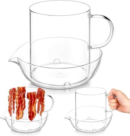 Glass Microwave Bacon Cooker for Crispy Healthy 7.6 x 5.7 Inch Bacon Cooker Cup for Microwave Oven Fast Cooking Easy Grease Draining Dishwasher Borosilicate Glass Kitchen Gadget Reduces Fat