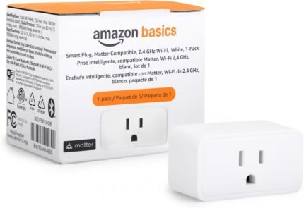Amazon Basics Smart Plug, Matter Compatible, Compatible with Amazon Alexa, Google Home, Apple HomeKit, Matter Hub Required, 2.4 GHz Wi-Fi only, White, 1-Pack