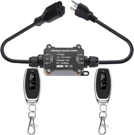 Remote Control Switch,AC110/230/240/250v Waterproof Wireless Light Switch with 4.9ft Extension Cord Outlet,20A RF Module Relay Switch,328ft Range for Household Appliances,Electrical Equipment