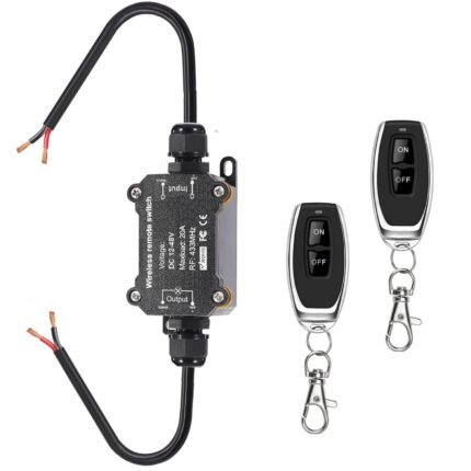 Remote Control Switch,DC12/24/48V Waterproof Wireless 433Mhz Transmitter Receiver Kit,20A RF Module Relay ON/Off Switch,164ft Long Range for Lights,Pump,Fan