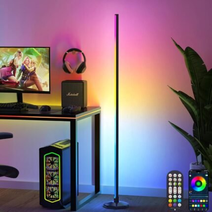 RGB Corner Floor Lamp:Uocub 16 Million DIY Colors & 68+ Scene LED Smart Modern Floor Lamp with Timing, Music Sync, App and Remote Control Standing Lamp for Living Room (1, 57″)