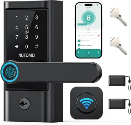 WiFi keypad Door Lock with Handle: NUTOMO keyless Entry doorlock deadbolt with Handle Set,Fingerprint Smart Lock for Front Door,Smart Electronic Deadbolt with Alexa/Bluetooth/App Control Black