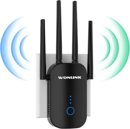 WiFi Extender Signal Booster,1200mbps WiFi Extender Coverage up to 5000 sq.ft, Dual Band WiFi Repeater, WiFi Boosters 4 Antennas, 2.4GHz & 5.8GHz WiFi Range Extender 802.11ac (Black)