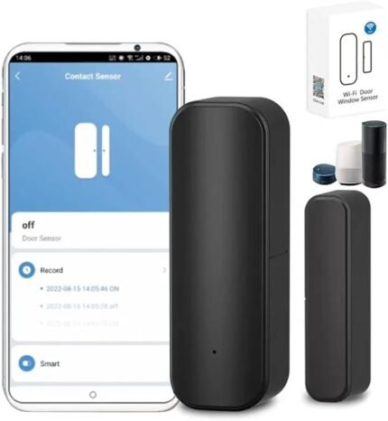 WiFi Door Sensor,Smart Door Open/Closed Detectors,2.4G WiFi Door Sensor, Tuya/Smart Life Contact Sensors for Home Security & Smart Home Automation, Compatible with Alexa Google Assistant (Black)