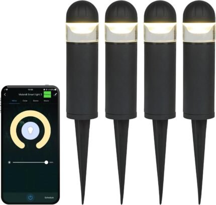Smart WiFi/BLE LED Pathway Lights (4 Pack) – APP Controlled Color Changing Low Voltage Outdoor Landscape Lighting, Music Sync, 12V Die-Cast Aluminum Bollard Lights for Garden