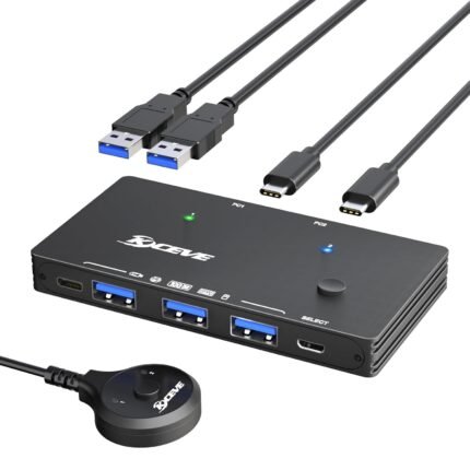 USB 3.0 Switch for 2 USB C Laptop, KCEVE USB 3.2 10Gbps 2 in 4 Out USB C Switcher for 2 PC Share 4 USB Devices, Printer, Scanner, Mouse, Keyboard, with 2 USB C-C cables, KCC204DZUS
