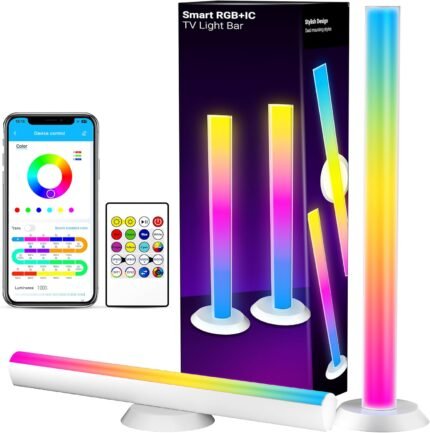 TJOY Smart Light Bars, RGB TV Backlight with Music Sync, LED Table Desk Light Bar, Game Lights with Scene Modes, 60 Lumens, Atmosphere Lighting for PC, Gaming, Pictures, Room Decoration, 2pack(White)