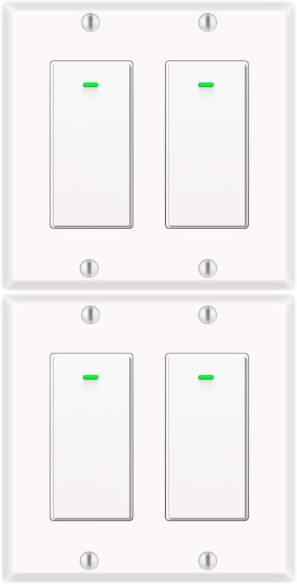 Alexa Light Switch, Double Smart WiFi Light Switches, Smart Switch 2 Gang Compatible with Alexa and Google Home, Neutral Wire Needed, with Remote Control, Timing Schedule, No hub Required (4Pack)