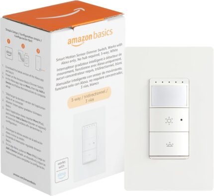 Amazon Basics Smart Motion Sensor Dimmer Switch, 3-Way, Works with Alexa Only, 2.4 GHz Wi-Fi, No Hub Required, White