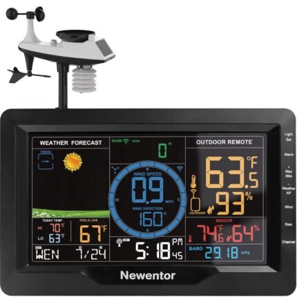 Newentor Weather Station Wireless Indoor Outdoor, Indoor Outdoor Thermometer Wireless, 7.5″ Home Weather Stations with Atomic Clock, Temperature Humidity Gauge, Weather Forecast and Barometer, Black