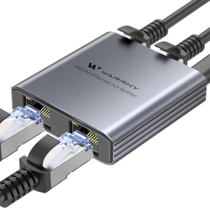 WARRKY Ethernet Splitter 1 to 3, 1000Mbps RJ45 Ethernet Switch 3 Port, [0.55inch Ultra Slim, Integrally Molded Aluminum Case] Gigabit LAN Splitter with USB-C Power Cable, for Cat5/5e/6/7/8 Cable