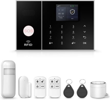 PGST WiFi Home Alarm System,2.4″ Colorful Screen Home Security System,8 Pieces Wireless Burglar Door Alarm Kits,Motion Detectors,Siren,4G SMS/Phone Tuya APP Instant Alerts for Home,Villa,Apartment