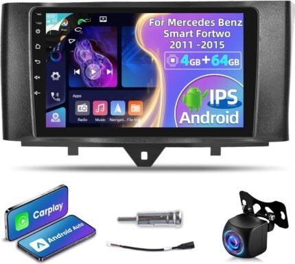 [4+64G] Car Radio for Mercedes Benz Smart Fortwo 2011-2015, 9 inch IPS 1280 * 720P Touchscreen Android Stereo – Wireless Carplay and Android Auto, AI DSP, Customize Homepage,SWC + AHD Backup Camera