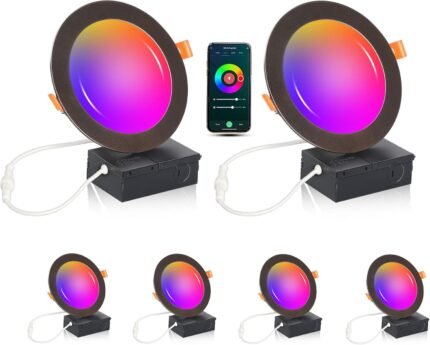 [6 Pack] CLOUDY BAY 6inch Smart WiFi LED Recessed Lights,RGB Color Changing Recessed Lighting,Compatible with Alexa and Google Home Assistant,15W 2700K-6500K,CRI90+ Wet Location,Oil Rubbed Bronze