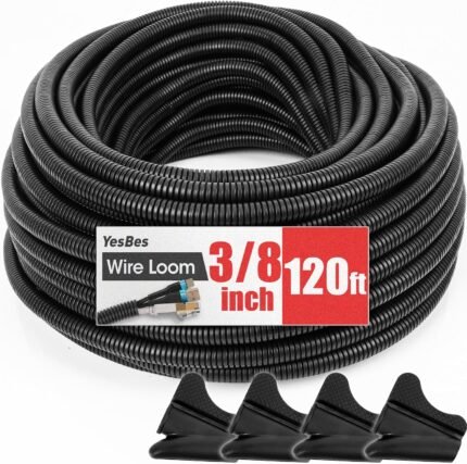 120 FT Wire Loom 3/8 Inch, Split Wire Loom Tubing Wire Conduit, Wire Protector Tubing – Black