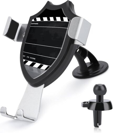 Classic Movie Clapboard Black Car Phone Mount Stand Hands Free Cell Phone Holder Non-Slip Ultra Stable Car Phone Holder Universal Fit Automobile Clamp Cradle Compatible with Most Cell Phones