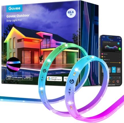 Govee Outdoor LED Strip Lights RGBIC with Warm and Cold White, 65.6ft 2.4G WiFi Smart Outdoor Lights, IP65 Waterproof, Work with Alexa and Google Assistant, App Control, for Porch, Patio, Eave, Party