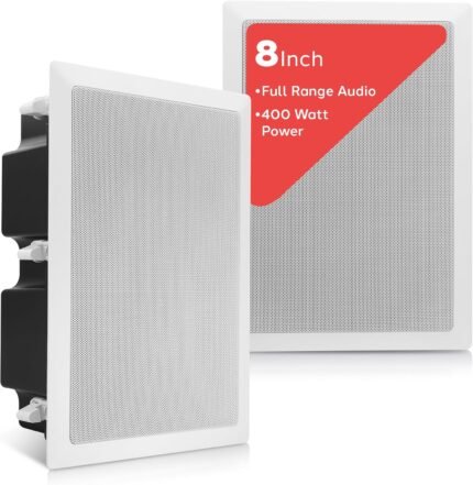 Pyle Ceiling Wall Mount Enclosed Speaker – 400 Watt Stereo In-wall / In-ceiling 8″ Enclosed Full Range Deep Bass Speaker System – 50Hz-20kHz Frequency Response, 4-8 Ohm, Flush Mount – PDIW87 White