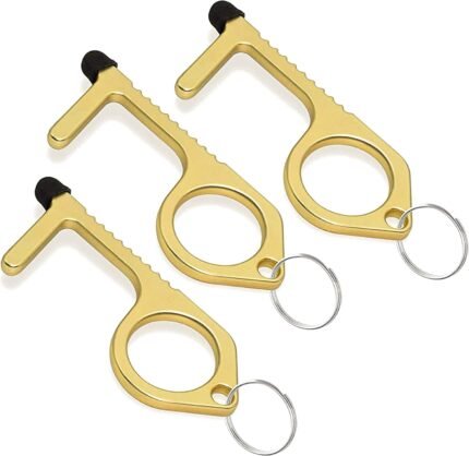 3pcs Brass Door Opener Keychain Tool – Touchless Key for Handles, Button Pusher Stylus, and Key Ring – Handy Utility Tool – by Mobi Lock