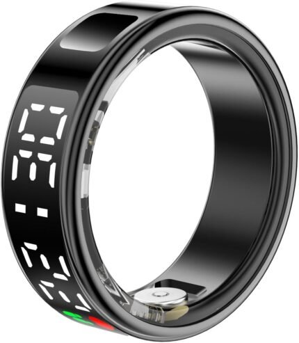 Fitness Tracker Ring, Smart Ring with Display & Charging Case, Accurate Monitoring of Pedometer, Heart & Temperature, IP68 Waterproof, 5-Day Battery Life, Black
