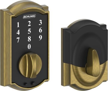 Schlage BE365 CAM 609 Camelot Keypad Deadbolt, Electronic Keyless Entry Lock, Antique Brass