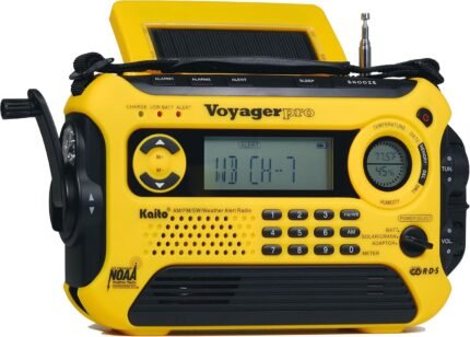 Kaito Voyager Pro KA600 Digital Solar Dynamo Crank Wind Up AM/FM/LW/SW & NOAA Weather Emergency Radio with Alert, RDS & Smart Phone Charger, Yellow
