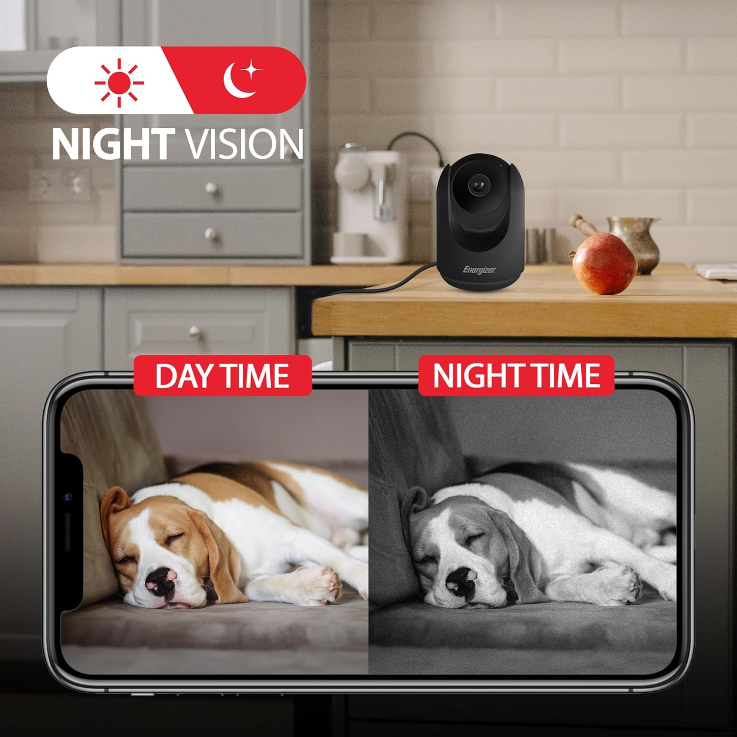Pan & Tilt with Full Coverage: The Energizer Smart 2K Indoor Camera offers 355-degree horizontal and 48-degree vertical pan and tilt capabilities, ensuring comprehensive coverage of your indoor space. With this wide range of motion, you can easily monitor every corner of a room, providing a greater sense of security and control.
